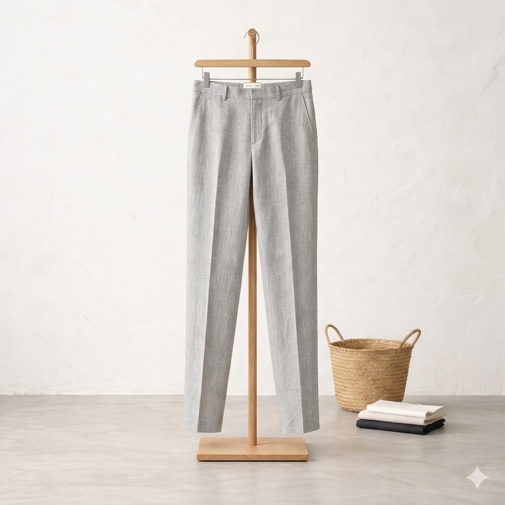 Confeccionado en lino ecológico de alta calidad, este pantalón ofrece una sensación ligera, fresca y naturalmente transpirable, ideal para el uso diario. Su tejido de acabado mate refuerza una apariencia sofisticada y discreta, alineada con un estilo contemporáneo donde menos es más.